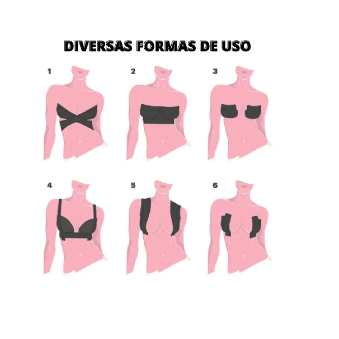 Fita adesiva que levanta os seios e possibilita o uso de decotes acentuados sem preocupações, já que não marca a blusa e é muito discreto. Possui trama com micro furos para deixar sua pele respirar, a costura se torna invisível e pode ser usado em muitas ocasiões sem marcar suas roupas. Adere bem a pele e não provoca irritações ou alergias. Pode ser usado para uso de decote frontal ou total, deixando as costas livres e criando um visual melhor em seus looks decotados.