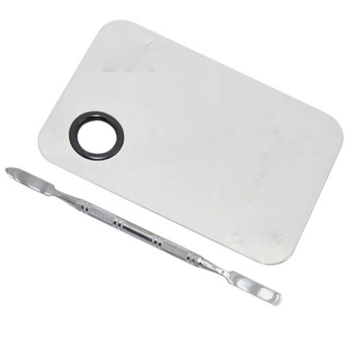 Placa e Espátula p/ Maquiagem em Metal Média