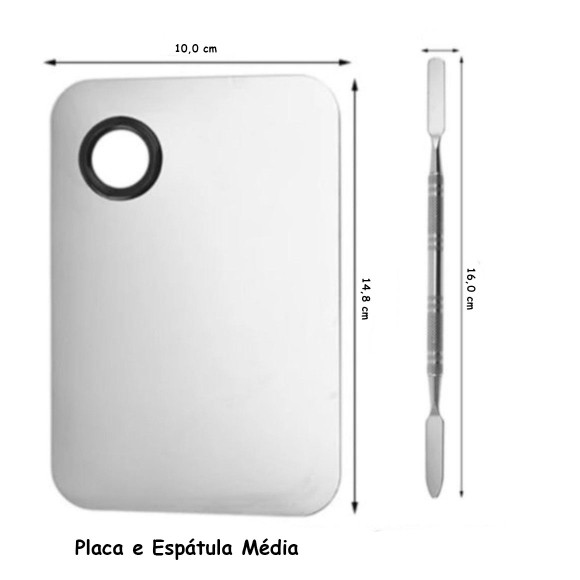 Contém: 01 placa metal e 01 espátula dupla para maquiagem