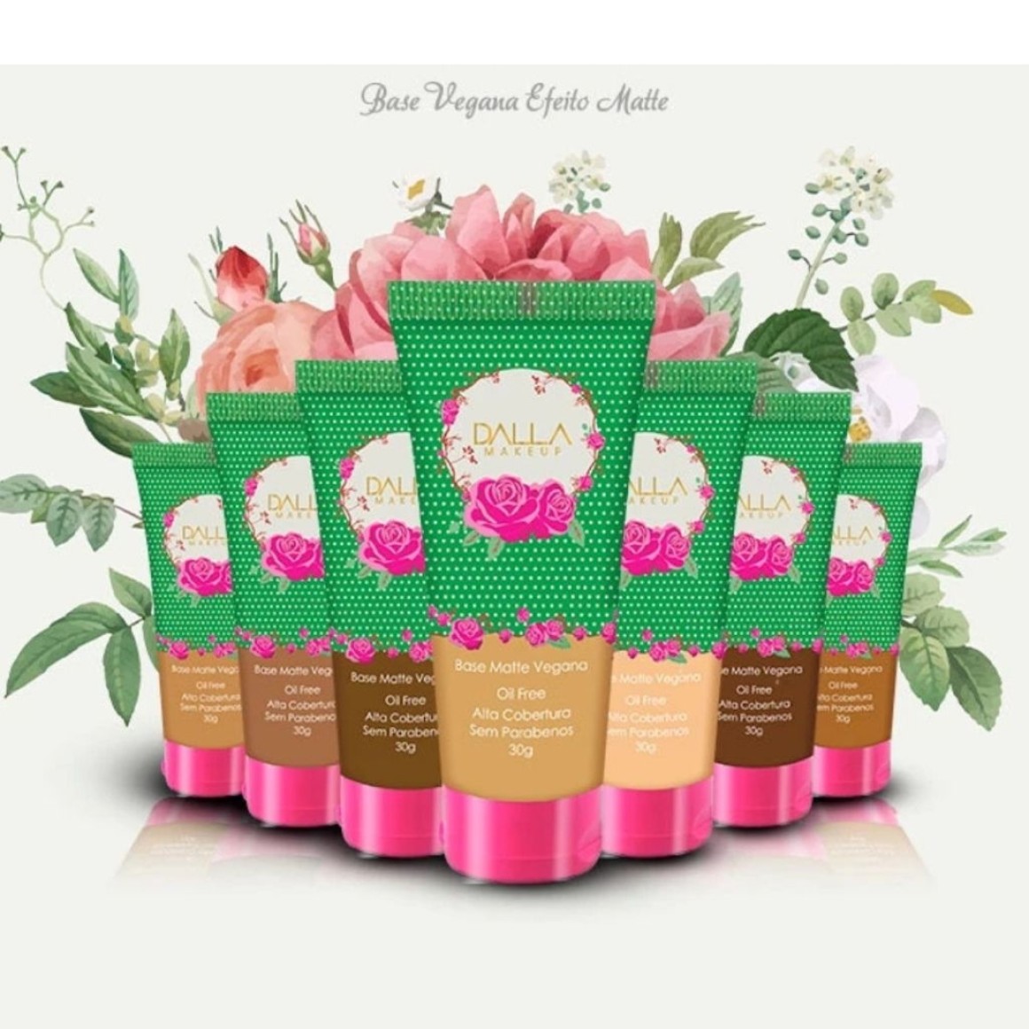 A Base Líquida Matte de Alta Cobertura da Dalla Makeup é Oil Free e possui acabamento matte com toque aveludado, é fácil de aplicar e construir camadas e auxilia no disfarce de olheiras, poros e linhas de expressão. Tem longa duração, proporcionando uma pele perfeita por muito mais tempo. É uma base Vegana, ou seja, não tem ingredientes de origem animal em sua composição e, também, é Cruelty Free, não foi testada em animais. Disfarçando desde olheiras até pequenas imperfeições. É uma base que pode ser construída em camadas, para um efeito mais intenso. A Base Matte Oil Free Dalla Makeup, foi criada para atender diversos tons de peles.