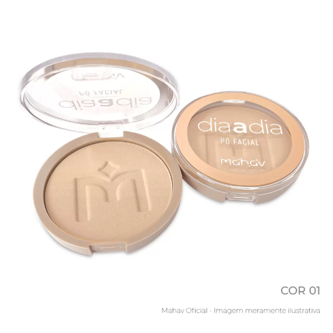 A Mahav é a Rainha dos Pós! Formulados com ótimas matérias-primas que não deixam o aspecto de pele envelhecida. O PÓ FACIAL COMPACTO DIA A DIA MAHAV foi desenvolvido com um sistema de alta micronização, que promove um pó fino, com textura delicada, que uniformiza, matifica e sela a maquiagem com uma cobertura natural, além do toque seco e aveludado. É o produto perfeito para socorrer a pele, no tom certo e sem brilho.