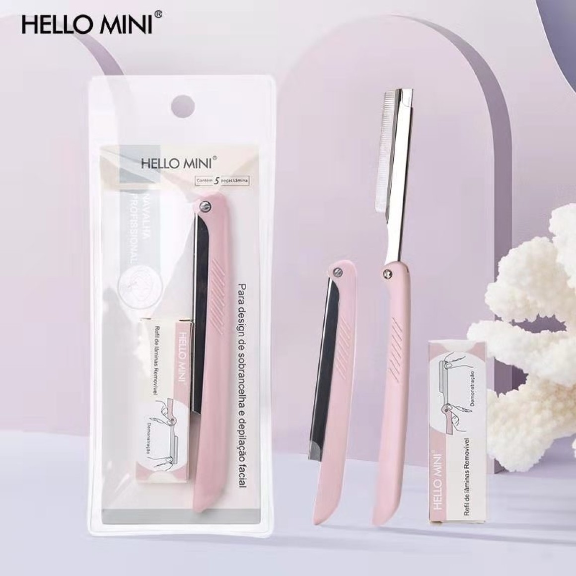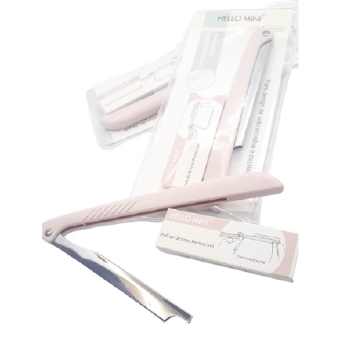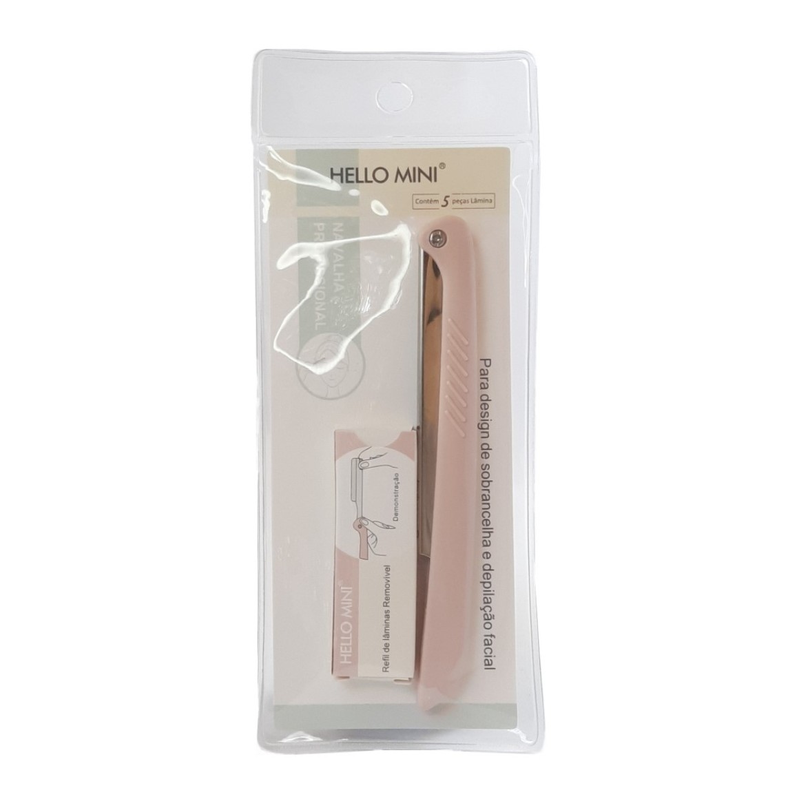 Navalha Profissional Hello Mini é ideal para design de sobrancelhas e depilação facial. Fácil de usar, remove rapidamente os pelos finos do rosto e pescoço, seu design compacto facilita o manuseio para modelos e acabamento.
