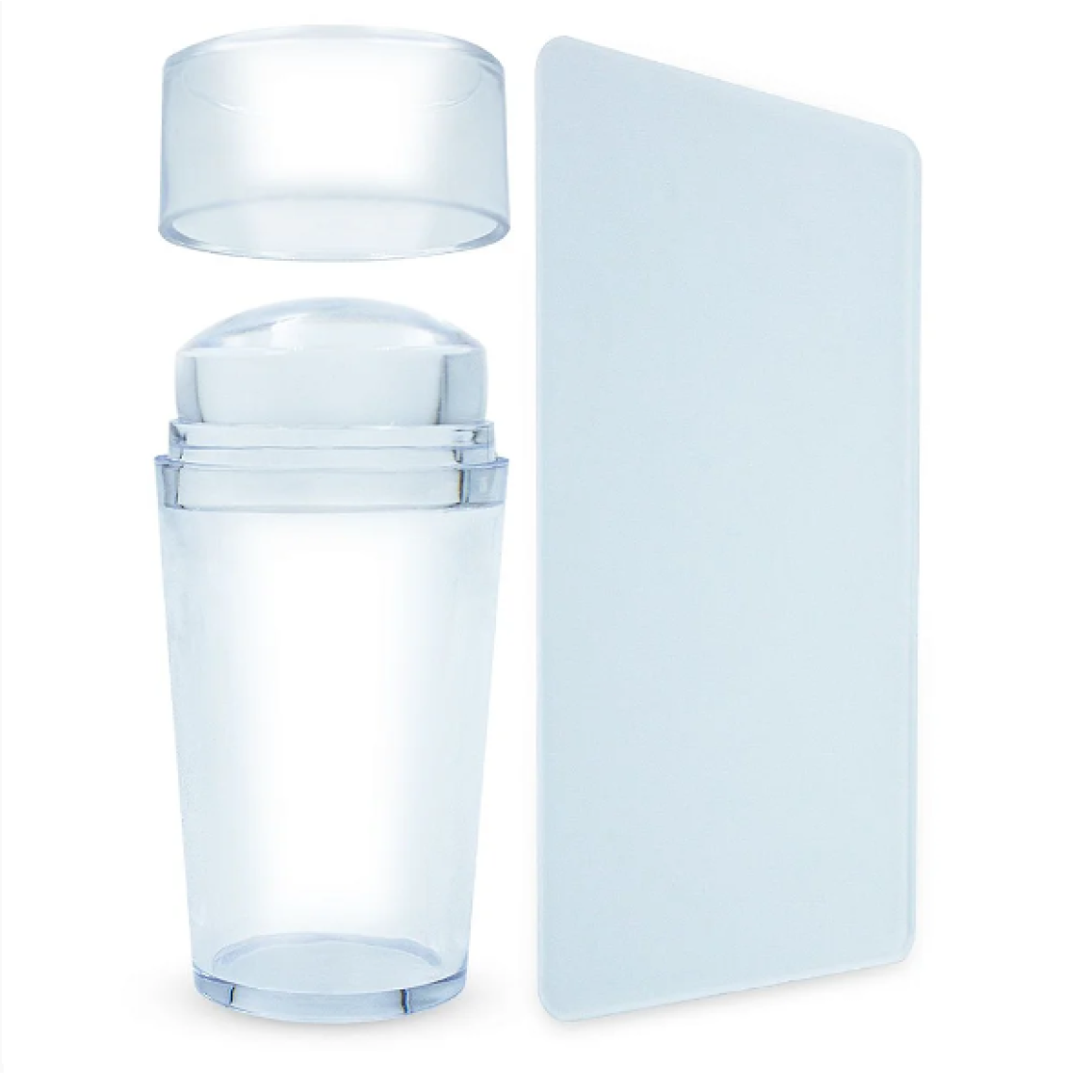 Características Técnicas Contém: 01 - Carimbo de Silicone para Unhas e 01 - Raspador Material: Plástico e Silicone Tamanho Aproximado: Carimbo: 6,5 x 3 x 2,5 / Raspador: 8,5 x 5,5 Cor: Transparente *Não acompanha placa com desenhos.
