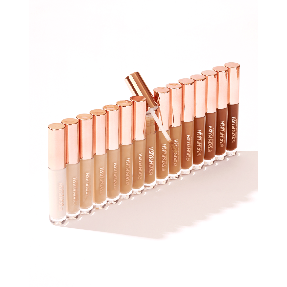 Um corretivo de textura soft mousse que oferece uma cobertura de leve a média e acabamento aveludado. Além de corrigir, iluminar e camuflar, o BT Skinplush conta com diversos ativos que ajudam a atenuar a aparência das olheiras e bolsas ao redor dos olhos. Ele também auxilia na hidratação e melhora da elasticidade da pele. Possui uma textura mousse, versátil e aveludada que garante maior conforto ao longo do uso. Ele conta com partículas modificadoras de sensorial para potencializar o efeito soft focus. Essas partículas se desmancham em contato com a pele garantindo uma finalização super aveludada e macia.