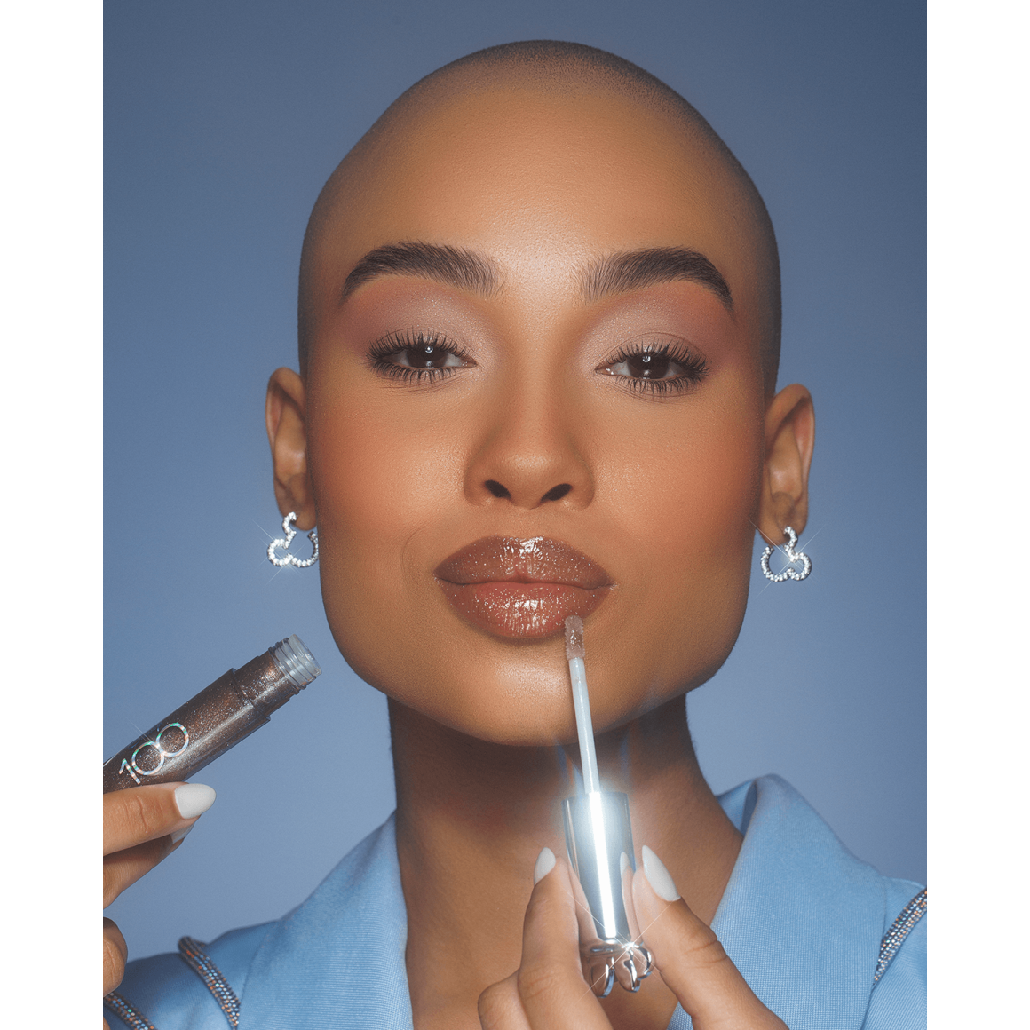 Aplique diretamente nos lábios. Faça o contorno do cupido. Se necessário aplique uma nova camada para intensificar o brilho. Como topper pode ser aplicado por cima do seu batom favorito.