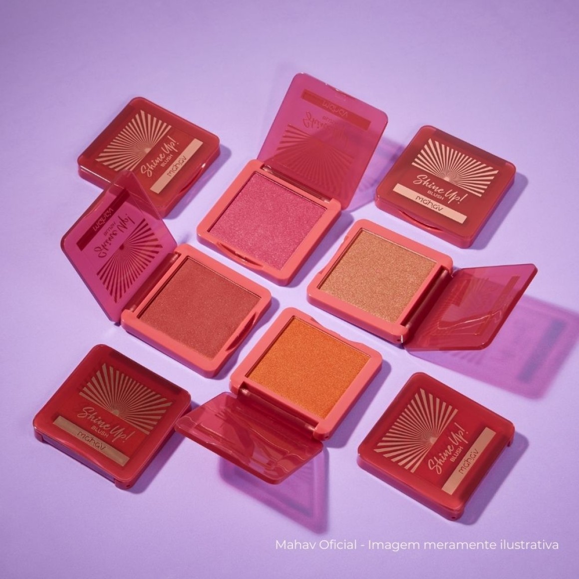 O BLUSH ILUMINADOR SHINE UP MAHAV apresenta uma combinação de tonalidades intensas e luminosas, a cartela de cor combina todos os tons de pele. Oferece aquele efeito de pele saudável que a gente ama, é a opção perfeita para deixar a pele coradinha e ainda ter aquele glow de efeito #UAU.