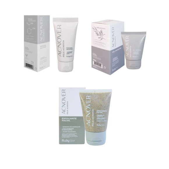 A Pomada Secativa Antiacne Acnover foi desenvolvida especialmente para acne, formula com complexo Bio-Normalizador composto por Ácido Salicílico fundamental para combater a acne e melhorar a aparência e textura da pele, Salicilato de Dimetilsilanodiol com ação queratolítica, purificante e suavizante, Acetilmetionato de Zinco com ação sebo-reguladora e nutritiva, os Extratos de Aloe e Pepino atuam como agentes hidratantes, reparadores, calmantes e refrescantes, Extrato de Lúpulo e Limão, auxiliam a normalizar a oleosidade excessiva e Pantenol com ação protetora e hidratante, e Óxido de Zinco que atua reduzindo a oleosidade. Livre de parabenos.