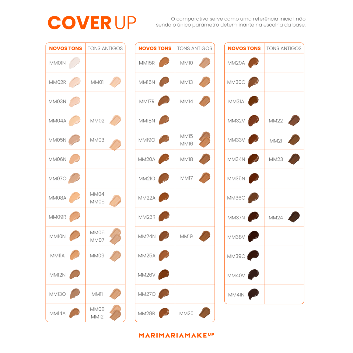 Com secagem rápida e cobertura ajustável, que vai de média a alta, a base Cover Up se adapta às diferentes necessidades, proporcionando um resultado personalizado. A base uniformiza o tom da pele e disfarça com naturalidade imperfeições como manchas, cicatrizes, marcas e olheiras, tudo isso com alta durabilidade para manter a pele impecável ao longo do dia.