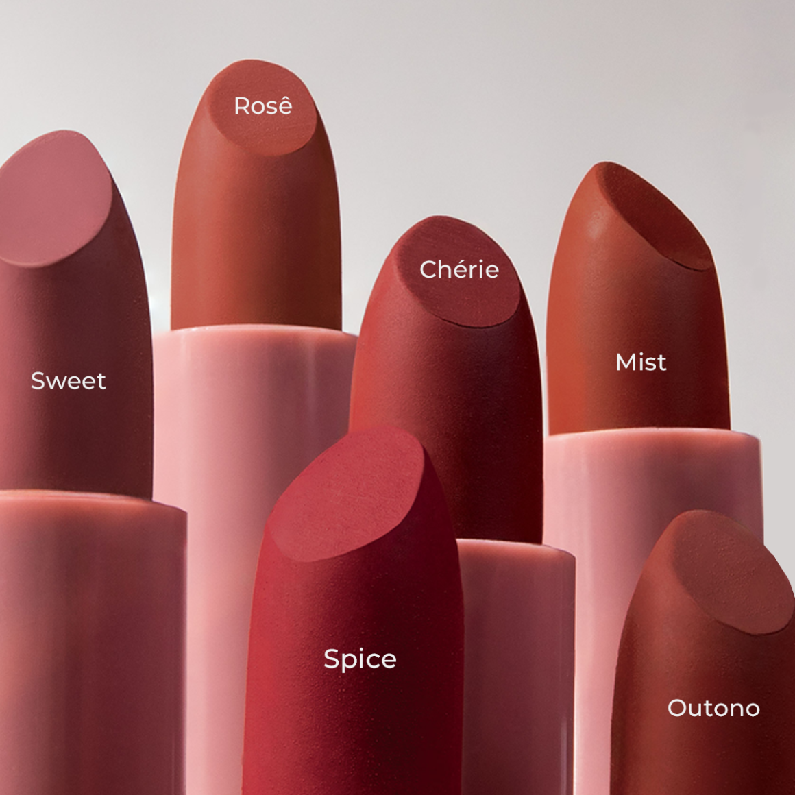 Cores: Cherie, Mist, Outono, Rosê, Spice e Sweet