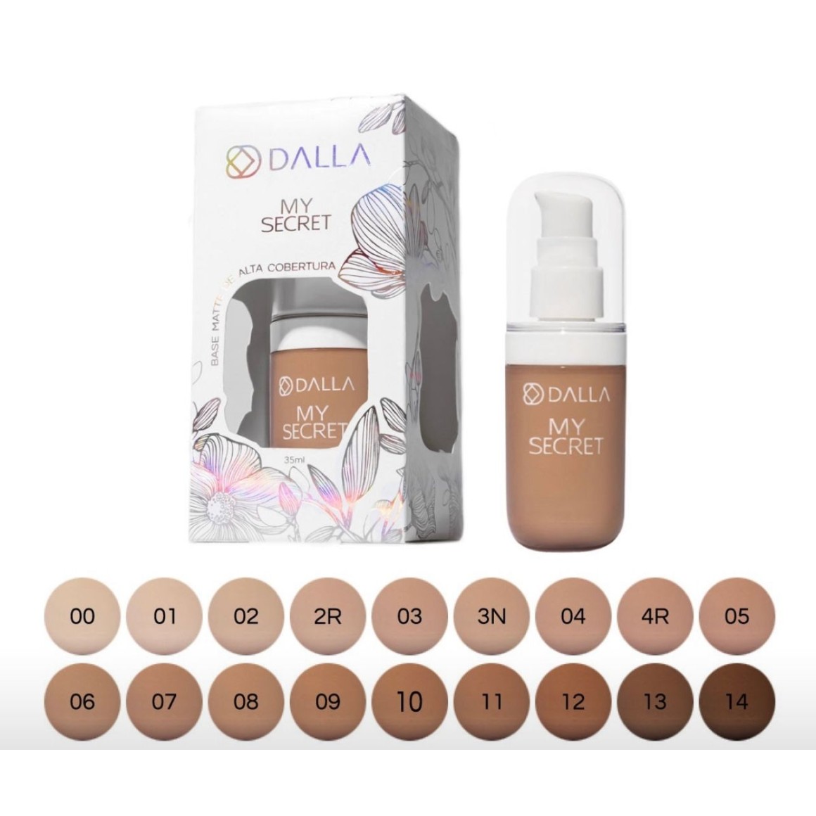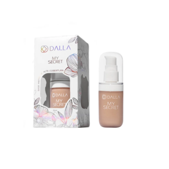 A Dalla traz uma base que é um verdadeiro presente para você! A Base My Secret é a base de alta performance que você esperava com alta cobertura efeito matte que uniformiza a pele, alta durabilidade, resistente a água e ao suor. Além disso, sua fórmula contém um componente hidratante que contribui para restabelecer os níveis de água na pele que protege e preserva sua elasticidade tudo isso em uma embalagem linda e presenteável.