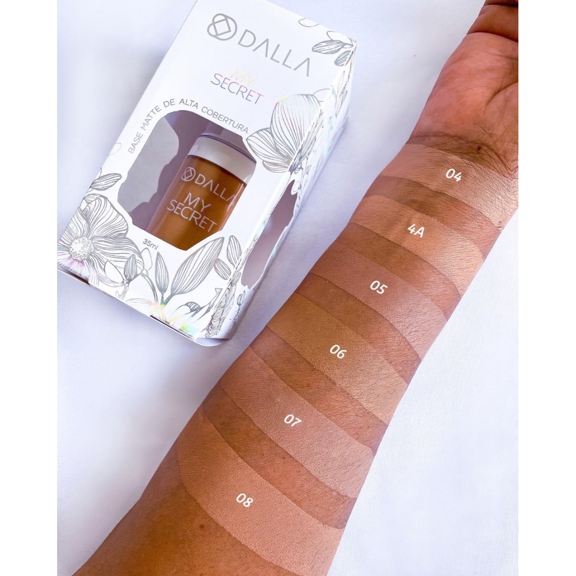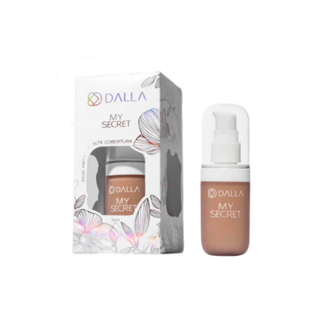 A Dalla traz uma base que é um verdadeiro presente para você! A Base My Secret é a base de alta performance que você esperava com alta cobertura efeito matte que uniformiza a pele, alta durabilidade, resistente a água e ao suor. Além disso, sua fórmula contém um componente hidratante que contribui para restabelecer os níveis de água na pele que protege e preserva sua elasticidade tudo isso em uma embalagem linda e presenteável.