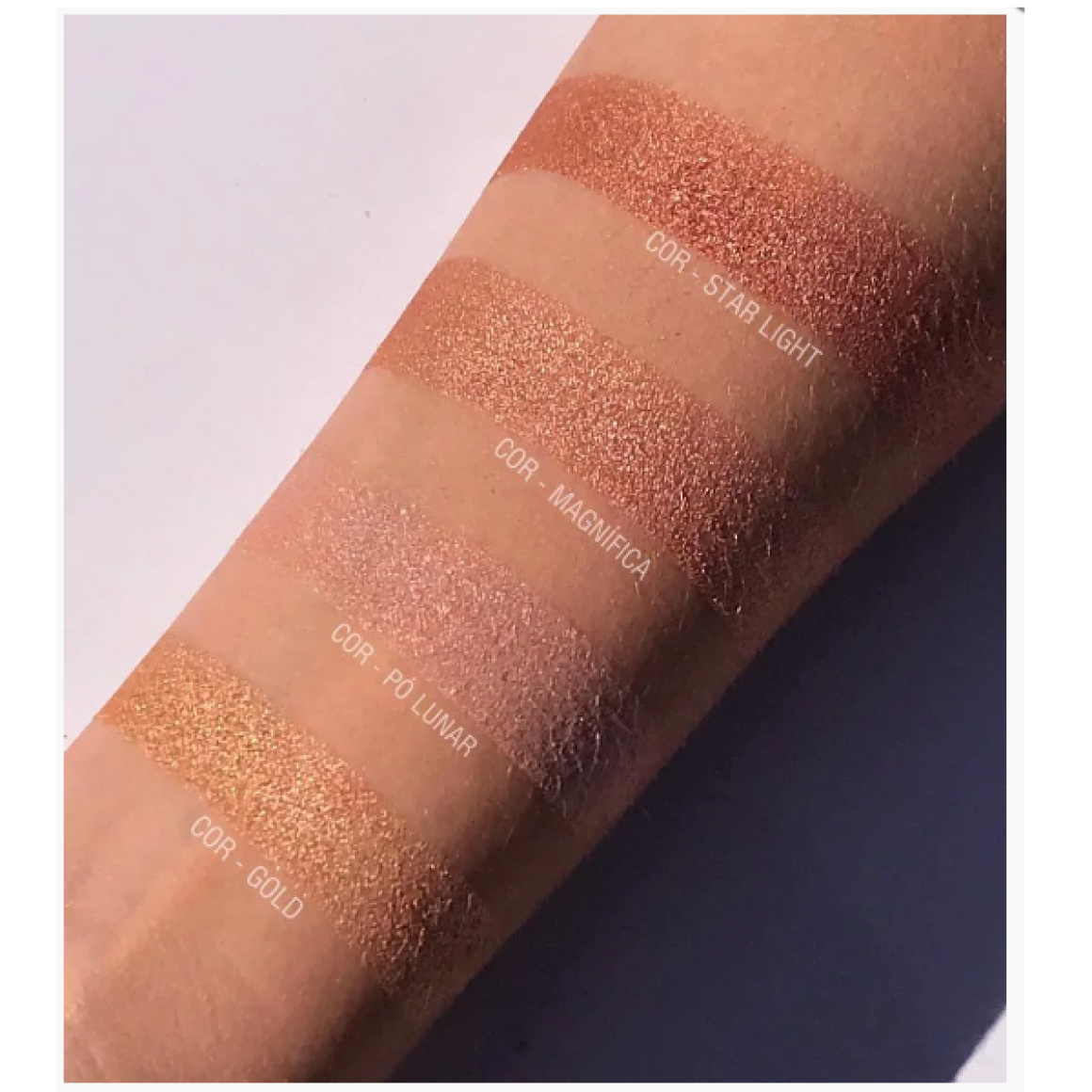 Aplique o iluminador após a preparação da pele nos pontos mais altos do rosto, como acima das maçãs do rosto, no centro da testa, no topo do nariz, no arco do cupido, no queixo ou abaixo do arco das sobrancelhas. O resultado é um glow super evidente!