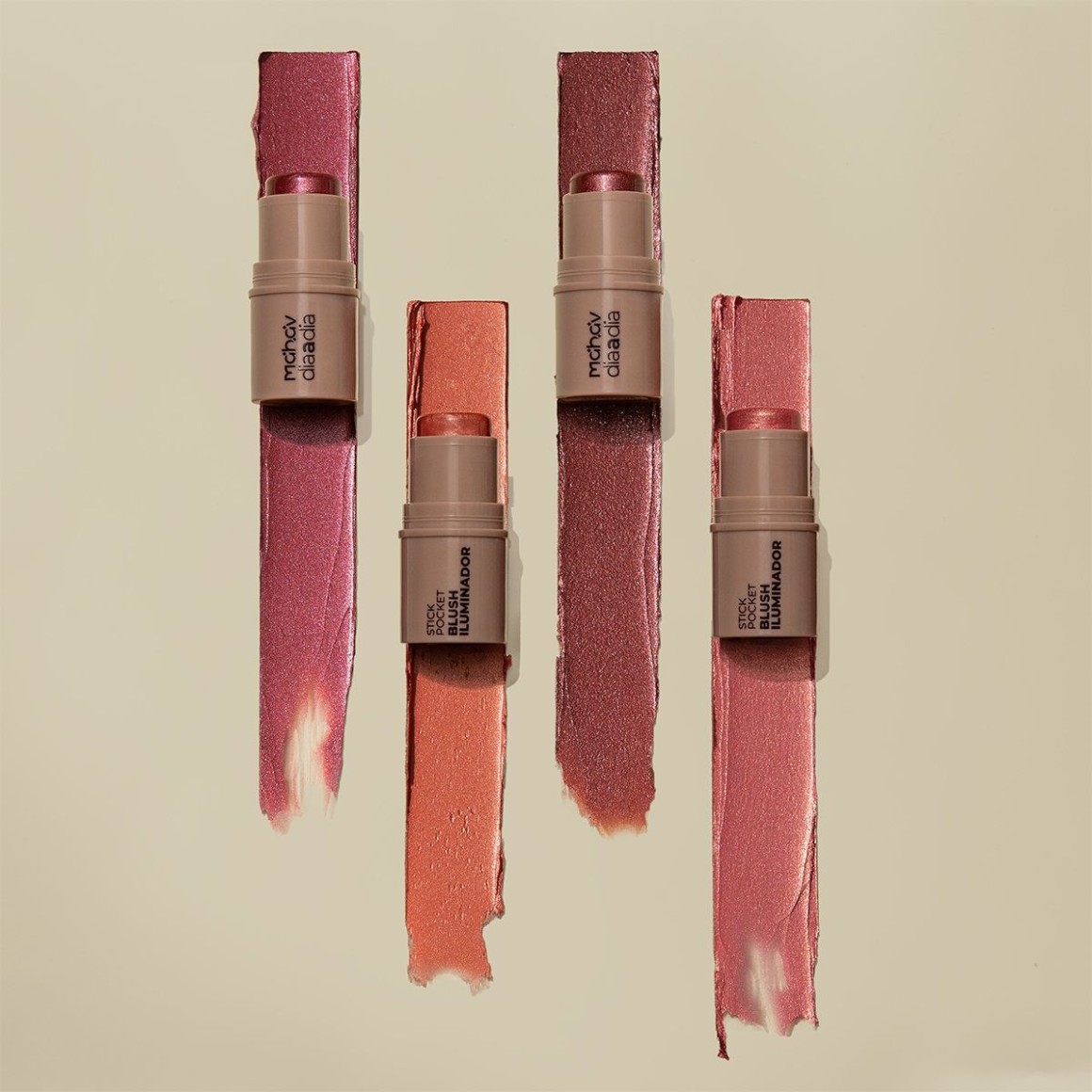 O Blush Iluminador Stick Pocket Dia a Dia Mahav é um produto em formato bastão compacto, desenvolvido para oferecer praticidade, intensidade de cor e iluminação. Fórmula cremosa, com textura suave e aveludada, que proporciona fácil aplicação diretamente sobre a pele. O acabamento é corado e iluminado, permitindo a construção de camadas para alcançar a intensidade desejada. Pode ser esfumado com pincel ou com os dedos, garantindo versatilidade na aplicação. Além disso, é um item multifuncional, podendo ser utilizado também como batom ou sombra.