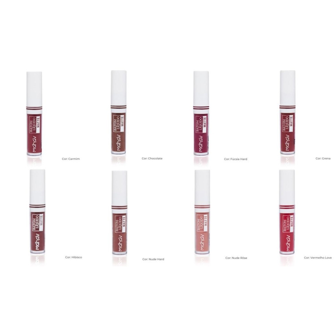 O Batom Líquido Matte da Mahav tem secagem rápida, baixa transferência, ótima pigmentação, cobertura uniforme, fácil aplicação, durabilidade e boa espalhabilidade.