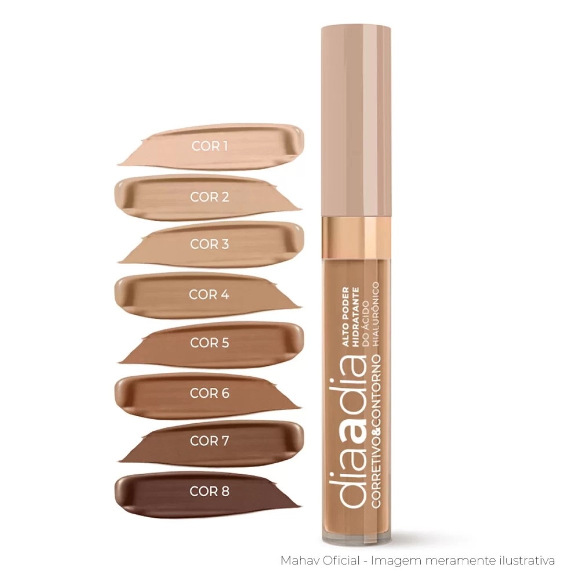 O CORRETIVO & CONTORNO LÍQUIDO DIA A DIA MAHAV é enriquecido com ácido hialurônico, o ativo cosmético queridinho de dermatologistas e celebridades, que recupera o viço da pele, suaviza linhas e marcas de expressão, além de ter um alto poder hidratante. Suaviza e ajuda no disfarce das olheiras.