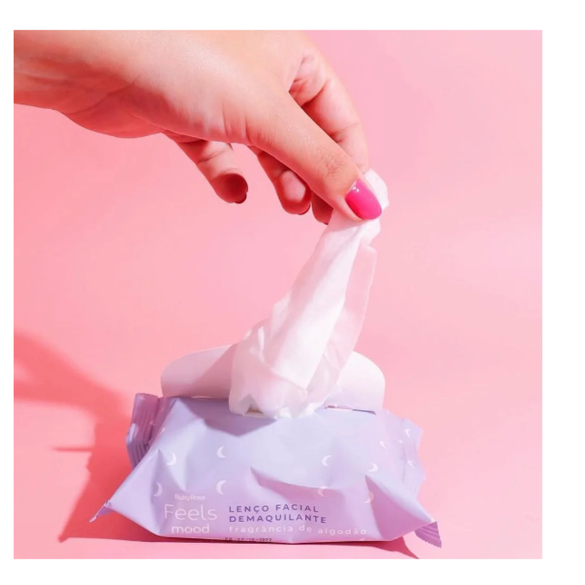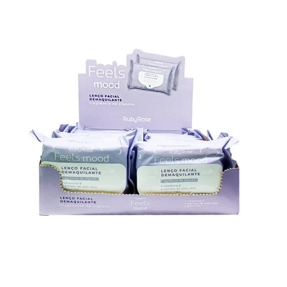 O Lenço Facial Demaquilante Feels Mood da Ruby Rose é uma solução eficaz e prática para a remoção de maquiagem do rosto. Feito com uma textura suave e macia, cada lenço remove a maquiagem de forma delicada e não agressiva para a pele. Sua fórmula é enriquecida com extrato de aloe vera, que ajuda a hidratar e acalmar a pele enquanto limpa. É uma opção suave e segura para peles sensíveis. Com embalagem compacta e conveniente, é perfeito para ser levado na bolsa ou em viagens para uso diário.