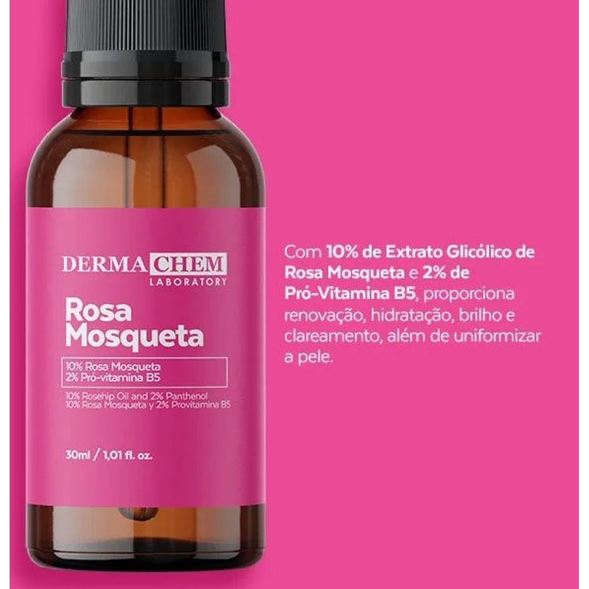 Transforme sua rotina de cuidados com a pele com nosso sérum inovador, que combina 10% de Extrato Glicólico de Rosa Mosqueta com 2% de Pró-Vitamina B5. O extrato de rosa mosqueta proporciona uma renovação profunda, promovendo hidratação, brilho e clareamento, enquanto a pró-vitamina B5 ajuda a uniformizar o tom da pele e oferece uma hidratação intensa. Ideal para quem busca uma pele mais fresca, revitalizada e com um toque de luminosidade natural.
