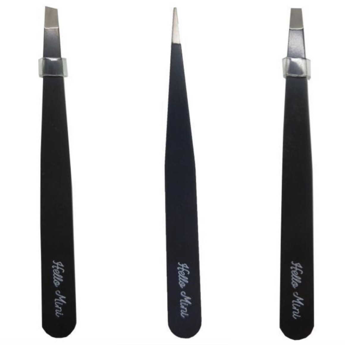 Kit 3 Pinça Profissional Hello Mini PI146 (Preta)